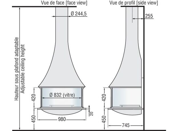 Дизайнерский камин JC Bordelet Zelia 908 Пристенный со стеклом