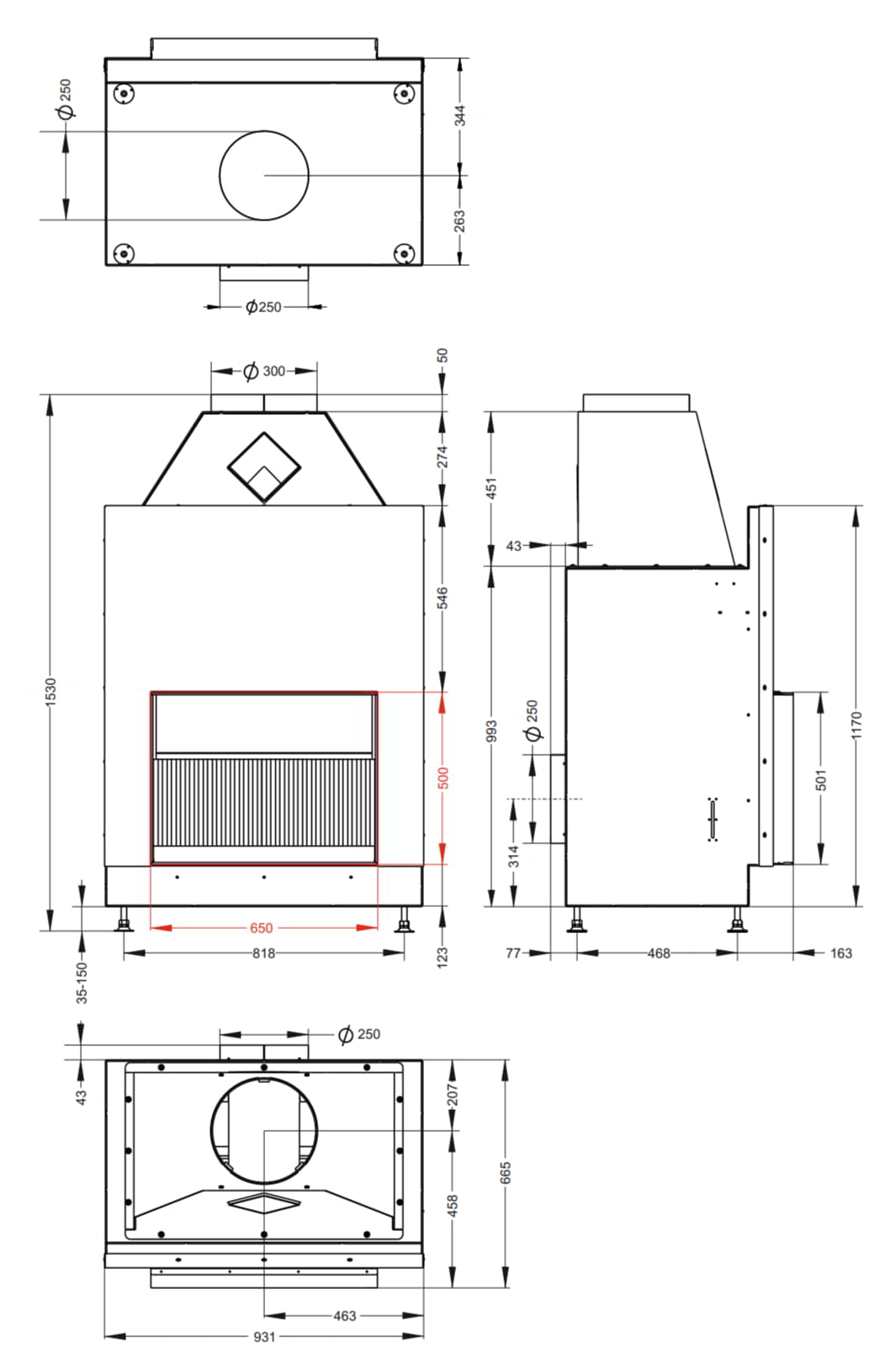 Открытая каминная топка Astov с сеткой О1С 65\50