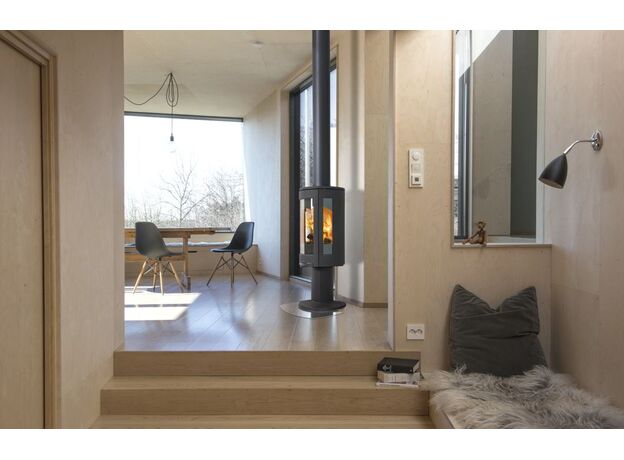 Пример монтажа печи WIKING Mini 4 в каркасном доме с дымоходом Craft